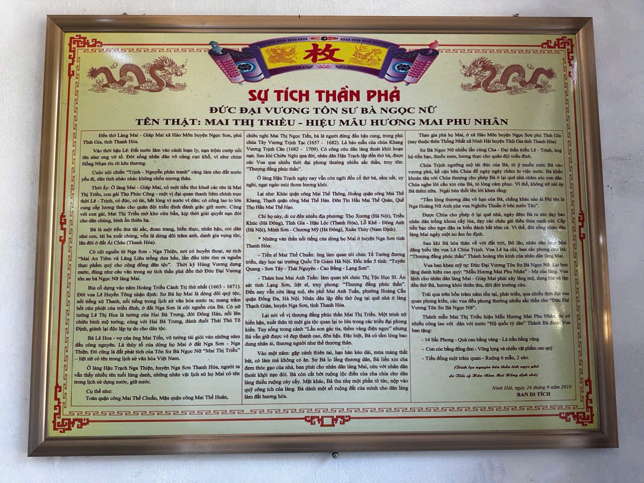 Ngày 21 tháng 8 năm 2024 (tức ngày 18 tháng 7 âm lịch), Tại Đền Thánh Mẫu Mai Thị Triều, Thị Xã Nghi Sơn, tỉnh Thanh Hóa.