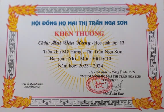 Hội Đồng Họ Mai TT Nga Sơn trao thưởng cho các học sinh có thành tích suất sắc năm 2024
