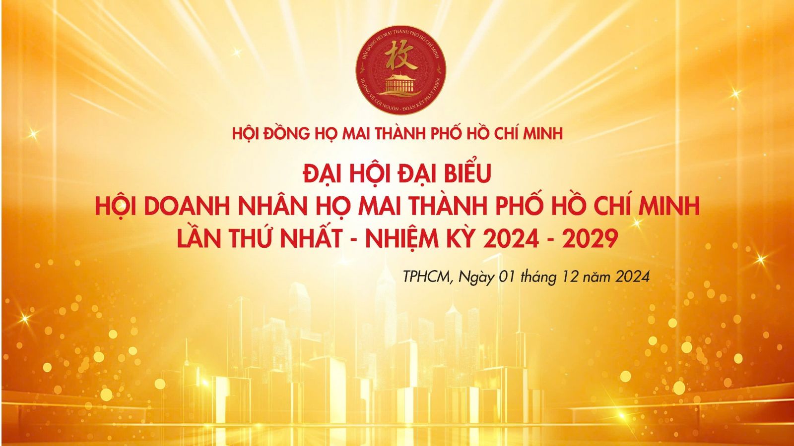 Thay mặt Ban tổ chức, xin trân trọng kính mời quý vị doanh nhân họ Mai tham dự Đại hội đại biểu Hội đồng doanh nhân họ Mai Thành Phố Hồ Chí Minh lần thứ nhất. Nhiệm kỳ 2024 - 2029.